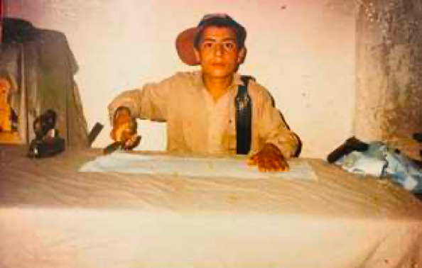 وی میگوید: «پس از ده سال به حیث شاگرد در دوکانی در تهران کار خود را آغاز کردم که در آن زمان ۳۰ هزار تومان میداد و در همان زمان که از سایۀ پدر و مادر محروم بودم، به سگرت معتاد شدم که خوشبختانه پس از دو سال با ورزش و آمدن مادرم به تهران، سگرت را نیز ترک کردم.»